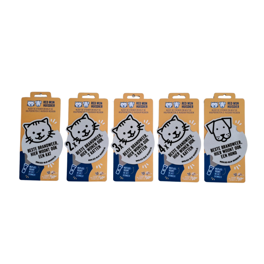 De ‘Red-mijn-huisdier’-sticker stelt hulpdiensten in staat om direct te identificeren of er huisdieren aanwezig zijn in jouw woning bij een brand, gaslek of CO-vergiftiging.